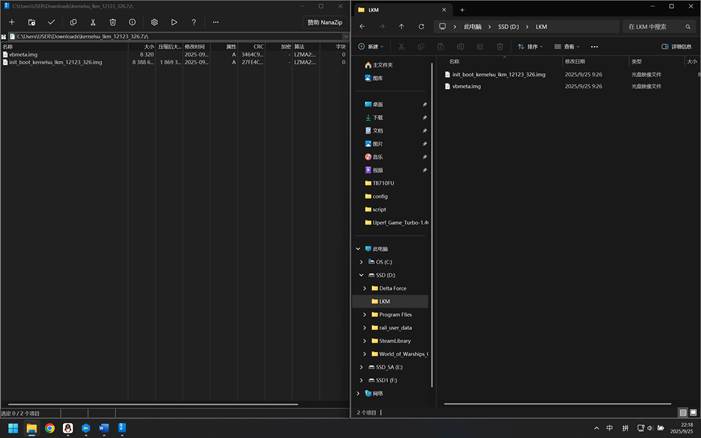 作者设备运行的 ZUXOS 版本为 326,因此下载群文件中的kernelsu_lkm_12123_326.7z。把其中的文件解压缩到方便找到的目录,例如D:\LKM